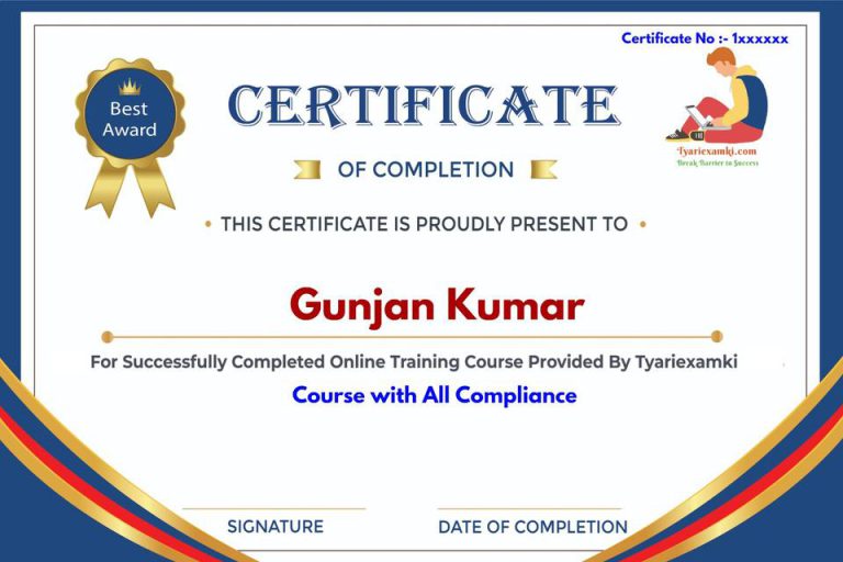 This certificate validates the successful completion of the online training course by Tyariexamki. It represents dedication, knowledge, and expertise in Trademark filing.